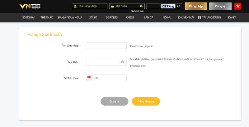 - Chưa từng thực hiện việc đăng ký tài khoản hội viên tại VN138