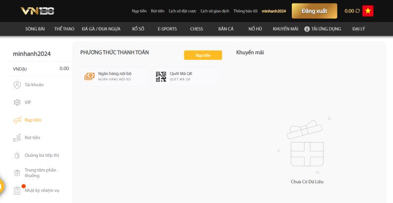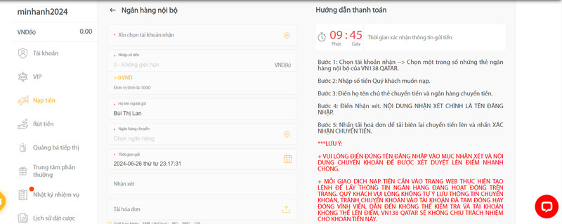 Hướng dẫn nạp tiền VN138 qua ngân hàng nội địa