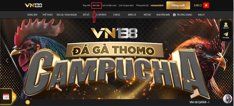 Chọn mục rút tiền VN138 và làm theo hướng dẫn
